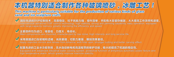 HR series of laser engraving machine is the multi-function device especially developed by our factory according to the requirements of glass industry, specialized in artistic glass industry. It replaces the primitive computer cutting machine and vertical and horizontal flat cutting machine, and sandblasting film directly affixes to the glass before engraving, which reduces a lot of reprinting troubles. This machine is characterized by higher speed and accuracy than cutting machine, without insufficient local engraving. It has highly stable mechanical structure design, stable CNC motion, high speed and accuracy. The device is easy and simple to use, making it the preferred device in the industry of artistic glass industry (sand blasting, concaving and frosting). Engraving machine has self-engraving and cutting function, which could directly engrave exquisite glass pattern and portrait, and produce various kinds of artistic glass, making it an engraving machine with a high performance-price ratio.